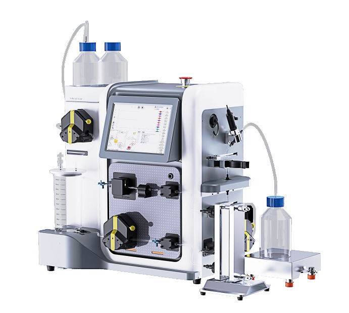 многофункциональная настольная система фильтрации с тангенциальным потоком. В качестве фильтрационных элементов в системе могут быть использованы фильтры с полыми волокнами или плоские полимерные мембраны. Система тангенциальной фильтрации BIORUS TFF Smart – это превосходная по своим характеристикам и доступная по стоимости альтернатива таким системам как AKTA Flux и SartoFlow, она может быть использована для отработки в лабораторном масштабе процессов концентрации, диализа, очистки и осветления биомолекул, таких как антитела, вакцины и мРНК. Система доступна в двух конфигурациях: полуавтоматической и полностью автоматической.